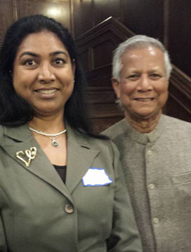 Muhammad Yunus earned the nickname "banker to the poor" by giving tiny cash loans -- often the equivalent of a few dollars -- to the poorest of the poor in Bangladesh. That simple idea grew into an international movement so vibrant that Yunus was awarded the 2006 Nobel Prize for Peace. Yunus earned a Ph.D. in economics at Vanderbilt University in 1969. He taught at Middle Tennessee State University before returning to Bangladesh in 1972 to teach economics at Chittagong University. According to a now-famous story, his first loan was given to a group of very poor women from the village of Jobra in 1974; the amount was the equivalent of $27. Two years later, in 1976, Yunus founded the Grameen Bank to make such loans on a wider scale, mostly to people with no collateral who would not be served by typical banks. The notion became known as microcredit, and as it spread to other countries it gave thousands of people the opportunity to pull themselves out of abject poverty. Yunus and Grameen were jointly given the Nobel Prize in 2006. By that time the bank had helped more than six million borrowers, the vast majority of them women. In awarding the prize, the Nobel Committee stated: "Lasting peace can not be achieved unless large population groups find ways in which to break out of poverty. Microcredit is one such means." Yunus was given the Presidential Medal of Freedom by President Barack Obama in 2009. Yunus was installed as teh Chancellor of Glasgow Caledonian University in 2012.