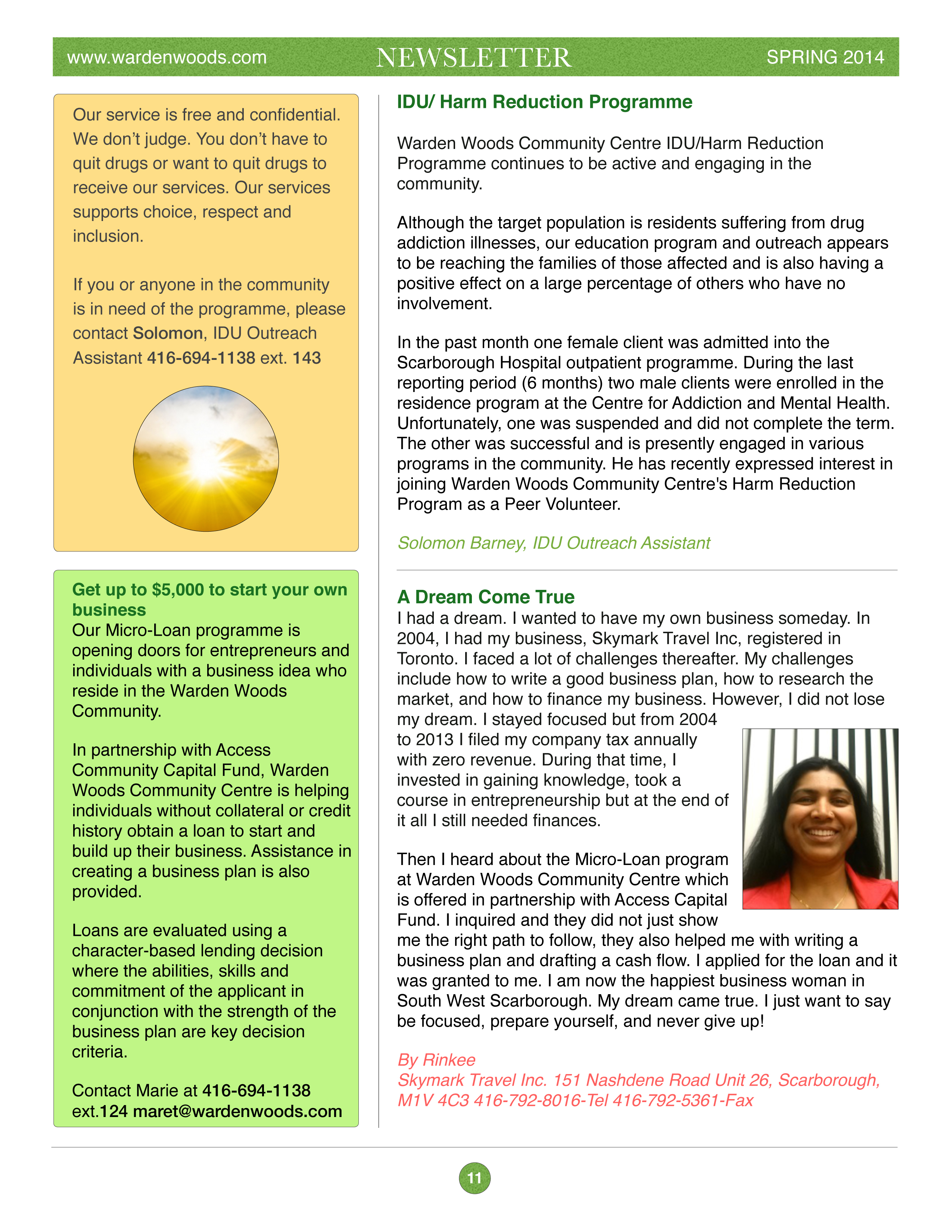 Then I heard about the Micro-Loan program at Warden Woods Community Centre which is offered in partnership with Access Capital Fund. I inquired and
